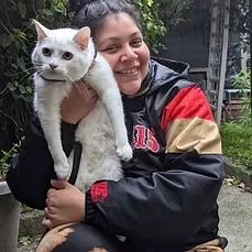 Nadine was born and raised in San Francisco and has been a long time cat enthusiast! She grew up bonding with the neighborhood cats in Bernal Heights and has fond memories of her childhood cat. She now lives with 2 tabby cats and often visits her family to see the kittens she helped raise during the pandemic. When she isn’t spending time with cats, Nadine loves to spend time outdoors going on hikes, riding her bike, and gardening!